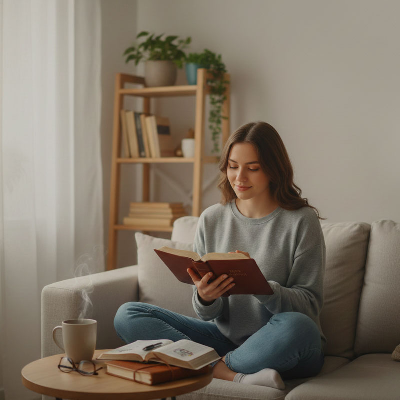Dedicamos tiempo a leer la Biblia y meditar en Sus enseñanzas. Seleccionamos un pasaje de lectura bíblica que te guíe a través de las Escrituras. Reflexionamos en cómo puedemos aplicar los principios bíblicos en nuestra vida diaria.